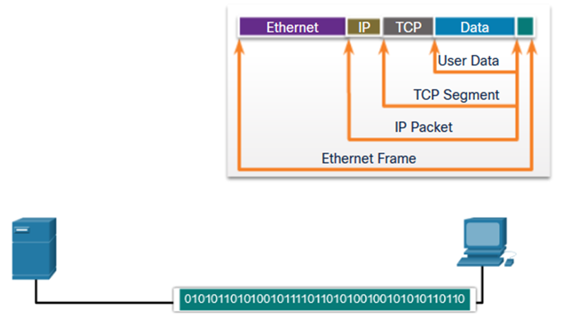 • المستوى أعلاه يقوم بعملها ثم يمررها إلى المستوى التالي من النموذج. يتم تكرار هذه العملية من قبل كل طبقة حتى يتم إرسالها كـ bit stream.